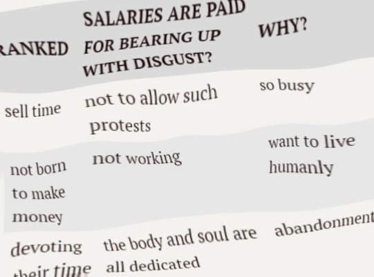 Human Rights and Contemporary Slavery - University of Denver ↩︎Salaries are paid for bearing up with disgust. I often heard such complaints in the past. In recent years, such issues have become less pointed out. why? Because it became so busy not to allow such protests. Or, because people who want to live humanly have established the option of not working.