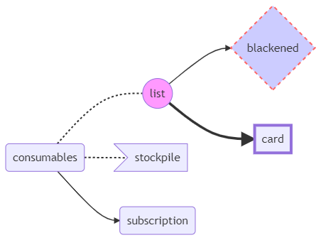 Let’s take a step forward here. Make a card for each consumable item, exclude the consumables card you procured, and leave only the cards you need to procure.